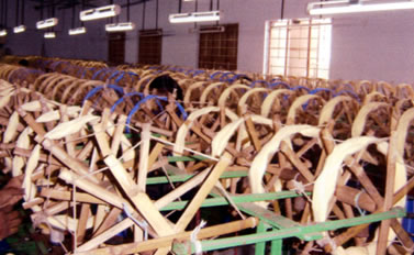 hank form filament is then winded into small bobbins. |